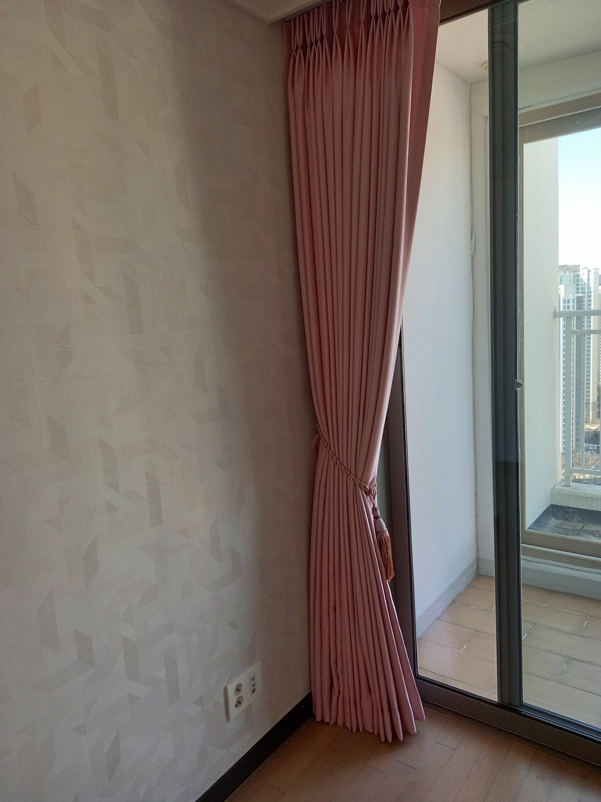 작은방은 핑크톤 암막커튼으로 설치하였습니다
